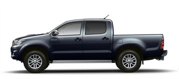Двигателей для Toyota Hilux предлагается два: оба дизельные, с турбонаддувом, объемом 2,5 и 3,0 л (144 и 171 л.с. соответственно). С мотором 2,5 л агрегируется 5-ти ступенчатая механика. Привод полный, с отключением переднего дифференциала (ADD) и дифференциалом повышенного трения (LSD). Дизельный агрегат 3,0 л работает с 5-ти ступенчатой АКПП. Привод полный, подключаемый, с отключением переднего дифференциала. Максимальная скорость не высока — около 170 км/ч, но ведь это не спортивное авто, поэтому заложенной в пикап мощности хватает как для движения по пересеченной местности, так и по шоссе. Этот мускулистый грузовичок по своим качествам подойдет как для малого бизнеса, так и для дальних путешествий с изрядной долей экстрима. Задняя зависимая рессорная подвеска пригодна для перевозки значительных грузов, а большой клиренс (около 220 мм) и полный привод помогут доставить груз в любое место.