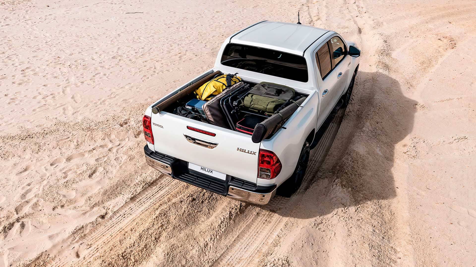 Задняя рессорная подвеска и вместительная платформа гарантируют высокую грузоподъёмность 880 кг, а мощные двигатели позволяют Toyota Hilux тянуть буксир массой 3,2 тонны, на тонну тяжелее, чем весит сам.