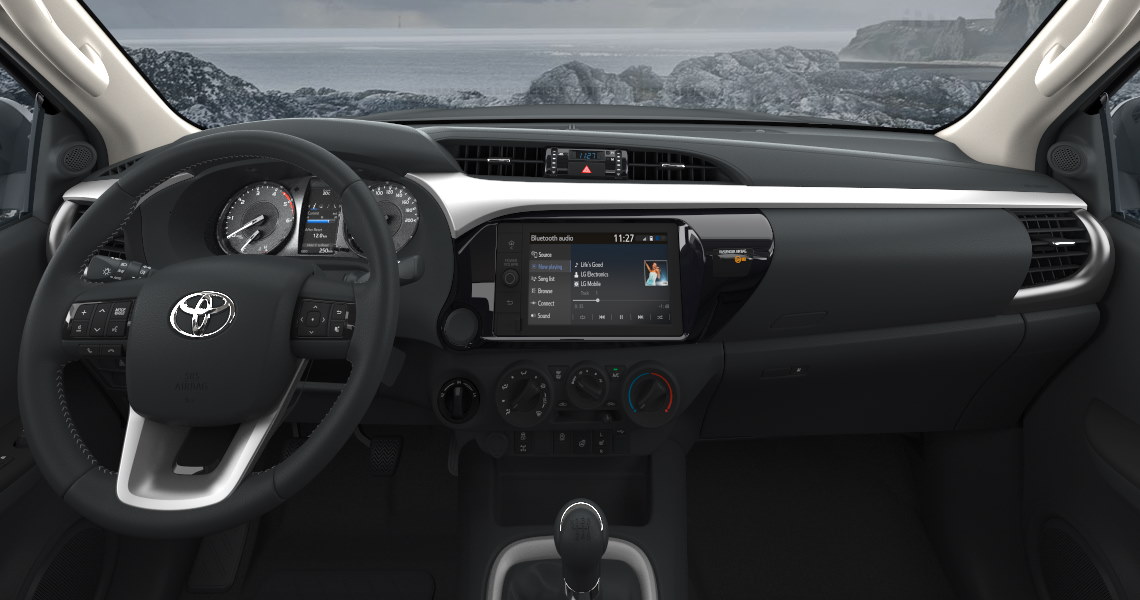 Новый Toyota Hilux оснащен продвинутыми опциями: обновленная приборная панель, инновационная мультимедийная система с поддержкой Apple Carplay и Android Auto, только высококачественные и прочные материалы отделки гарантируют удобство водителя и пассажиров.