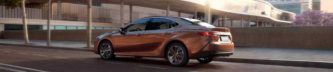 Toyota Camry – это элегантный бизнес-седан с выразительным дизайном, сочетающим динамику и премиальность. Продуманные линии кузова, широкая решетка радиатора и стильная светодиодная оптика создают эффектный образ, подчеркивая современный характер модели. Низкий силуэт и обтекаемая форма кузова улучшают аэродинамику, способствуя плавному и устойчивому движению на дороге.