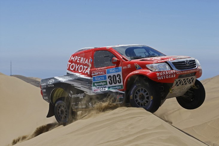 В категории специально подготовленных автомобилей экипаж Жиниэля де Вильерса на непобедимом пикапе Toyota Hilux финишировал на 2-й позиции. Ралли-кар №303 команды IMPERIAL TOYOTA закончил гонку с минимальным отрывом от лидера, составившем всего 35 минут и 34 секунды.
